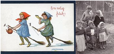 Easter witches. On Holy Saturday (the Saturday between Good Friday and Easter Sunday) the children dress up as Easter witches and go from door to door. They sing songs and hand out drawings. In exchange, they are rewarded with sweets. So the current Swedish Easter Witch is a cute and friendly witch and not a scary witch as in the middle ages.