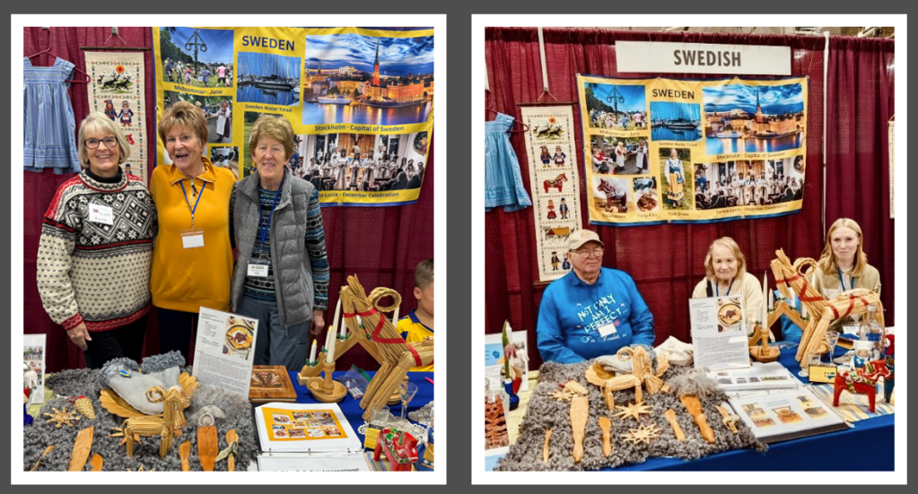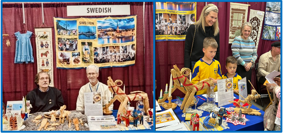 Swedish American Historical Society of Wisconsin together with Vasa Order of America, Linde Lodge represented Sweden in the Nordic Council of Wisconsin cultural booth at the Folk Fair at Milwaukee State Fair Park held from Friday November 22 to Sunday November 24. The theme for the Folk Fair was “Celebrate the Culture of Traditional Art”. Traditional Art embodies painting, pottery, sculpture, textiles, metalwork, and many others.