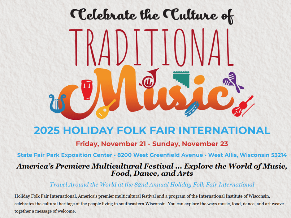 Recognizing the Swedish ethnicity and for many of us the Swedish roots are important for our identity. The same goes for other Wisconsinites, descendants of immigrants from Germany, Poland, Italy, China, Norway and many more countries. The Holiday Folk Fair International is celebrating the international community of Wisconsin. Travel Around the World at Holiday Folk Fair International