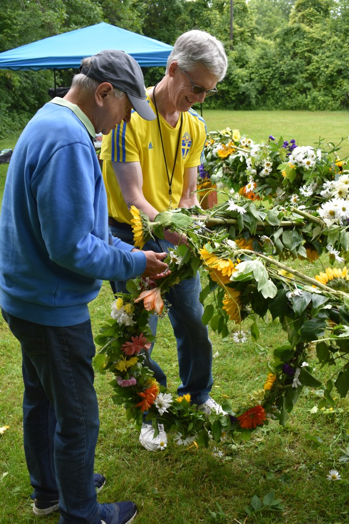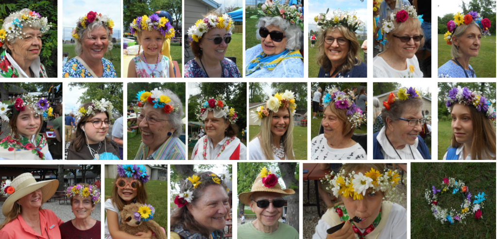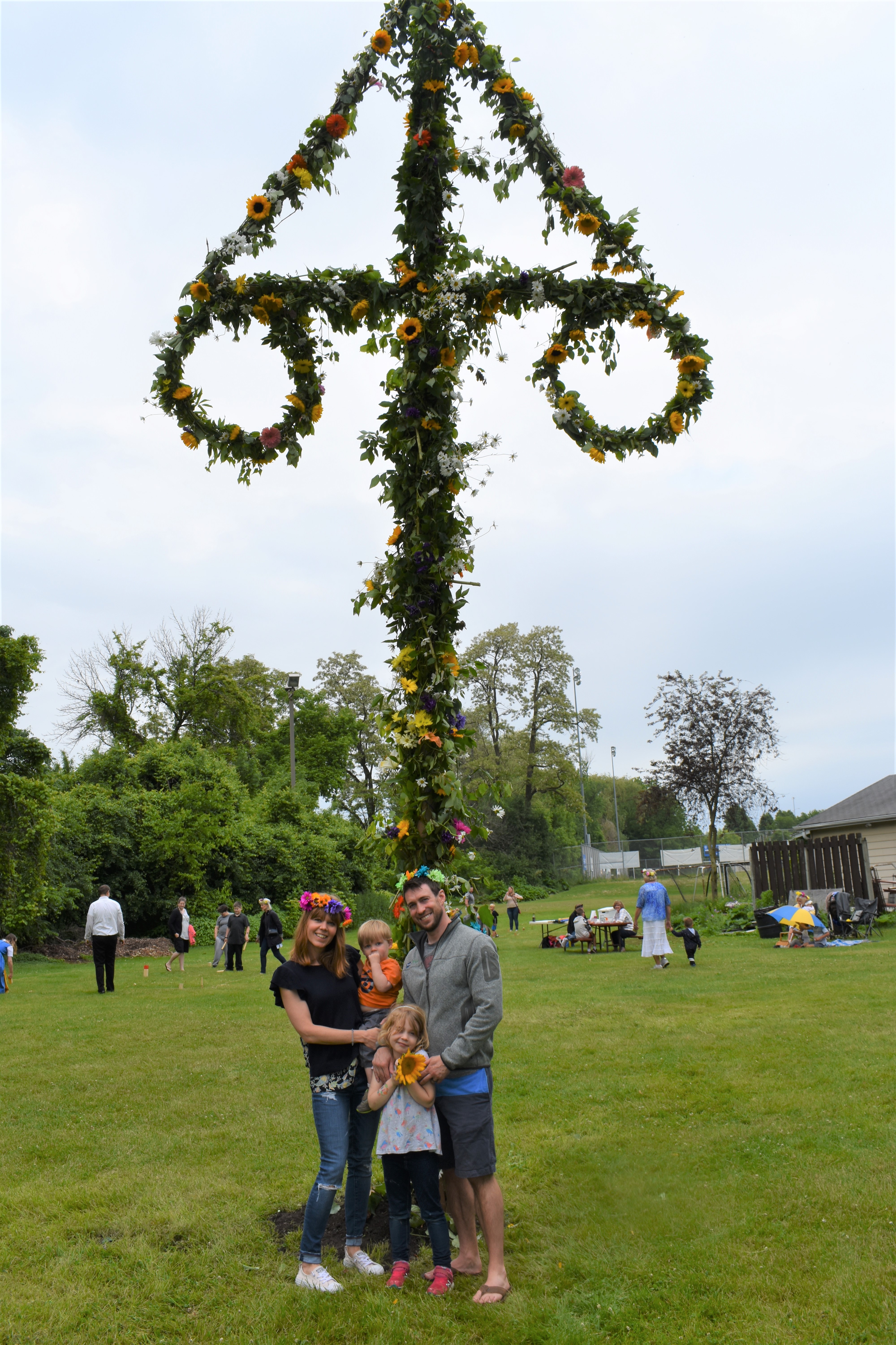 Part of the tradition is also making and wearing a “Blomsterkrans” flower crown, playing games such as Kubb, Sack raises, and face painting for the children. The food menu consisted of Swedish meatballs and Strawberry cake. A brief downpour did not discourage participants in this traditional major Swedish celebration of solar solstice, the longest day of the year.
