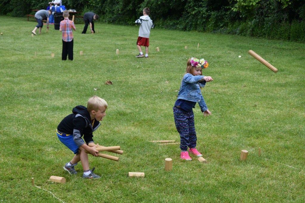 Play the traditional game of Kubb (link Wikipedia description, game available at link Amazon)