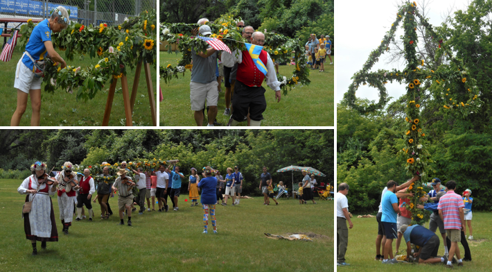 Based on Swedish traditions the attendants first decorated the Midsommar Pole with flowers and greenery, then carried the pole in a procession and raising it. The dancing followed with traditional dances around the pole like “små grodorna” (the little frogs), “vi äro musikanter” (we are all musicians) and other popular song and dances. Norwegian Lykkeringen Folk Dancers performed folk dances from Norway.