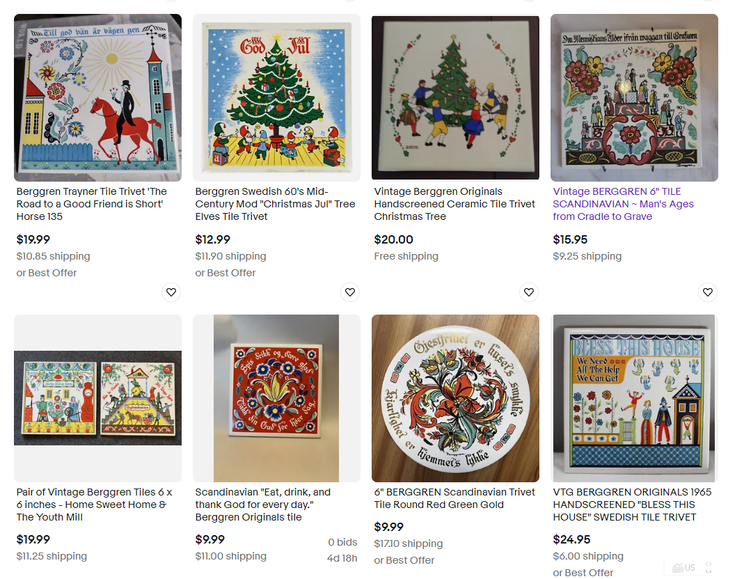 The vintage original Berggren tiles are still being sold at reasonable prices…this is an ebay screenshot