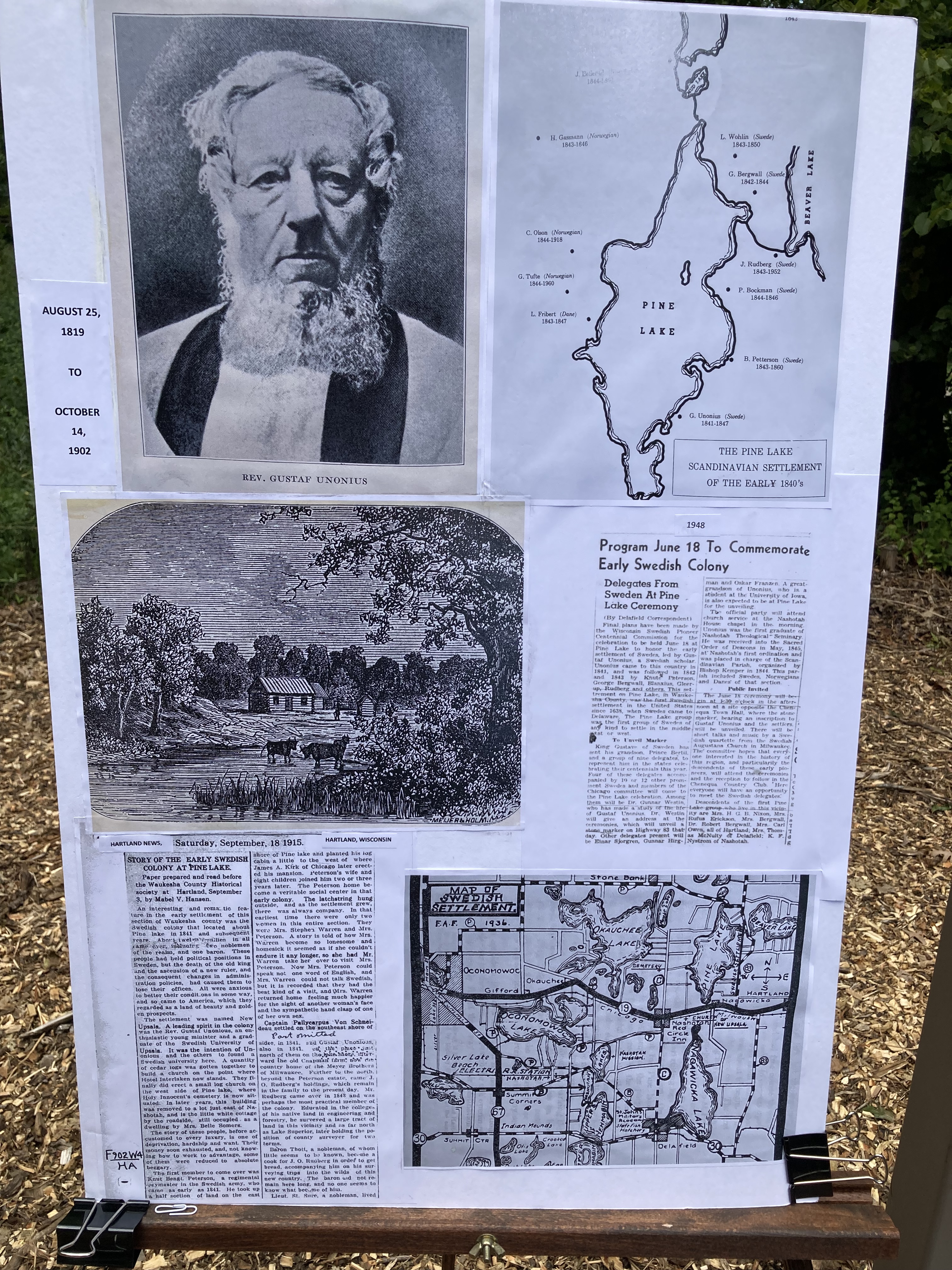 The next stop was Chenequa Village Hall, where Chenequa Village President Jo Ann Vilavicencio presented the history of Gustaf Unonius, who with wife and friends in 1841 traveled from Sweden to Wisconsin and their adventures establishing a living and the New Upsala settlement by Pine Lake. Jo Ann (Joni) told the story how the settlement during 1850’s faded and many of the Swedes and other Scandinavians moved on. In the late 19th century, the community began to be referred to as Chenequa, the Potawatomi Native American word for Pine and in1928 the Village of Chenequa was incorporated. Please find here the full story told by Joni.